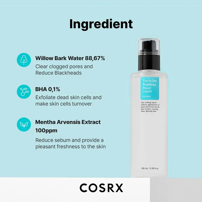 The Cosrx Two In One Poreless Power Liquid 100ml is a toner-treatment designed to minimize the appearance of pores and refine skin texture. It combines exfoliating and pore-tightening benefits for a smoother, clearer complexion.